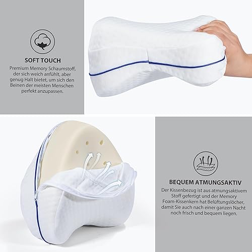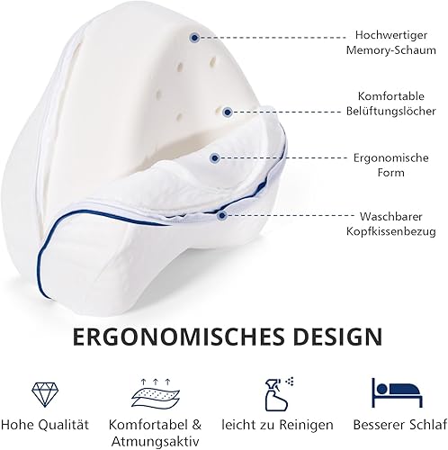Coussins Relève-Jambes, Ergonomique Coussin Entre Jambes pour Dormir, Oreiller Jambes en Mousse Mémoire de Forme, Coussin pour Genoux Dormir sur Le Côté