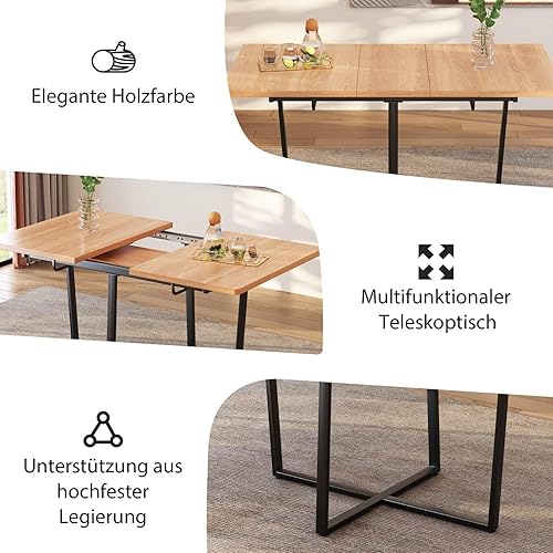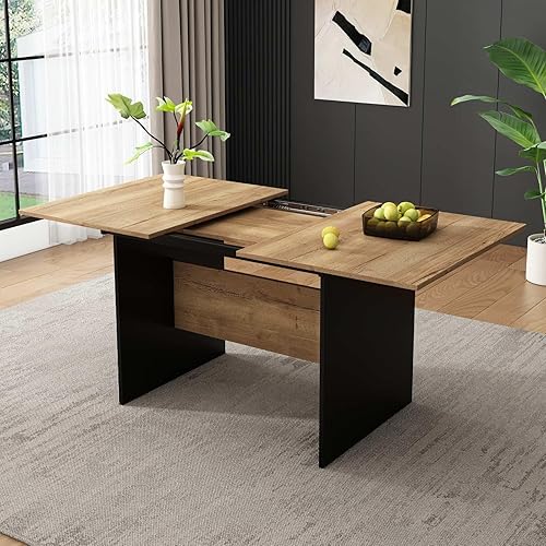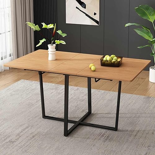 PUGSDRLY Table a Manger Extensible,Table Salle à Manger Rectangulaire,Tables de Salle à Manger Multifonctionnelle,Moderne Minimaliste,Table Basse/Table de salon,Design Unique (110/140x80x75cm-Natural)