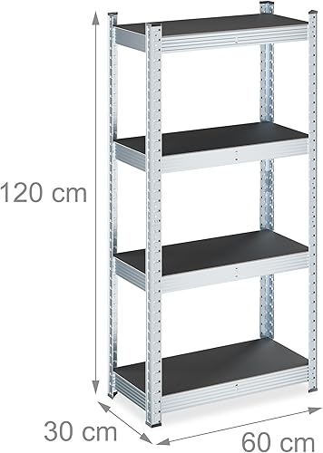 Relaxdays Étagère Charge Lourde, pour la Cave ou Le Garage, H x L x P : 120 x 60 x 30 cm, Marron et argenté