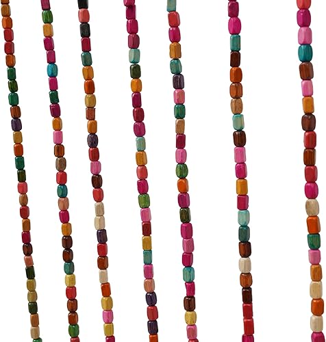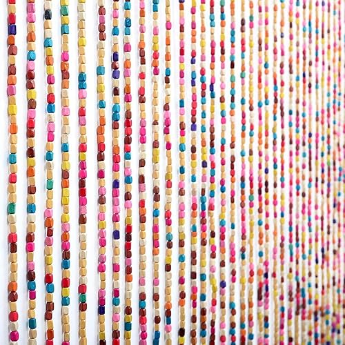 SanBouSi Rideau de porte en perles de bambou - 27 brins - Arc-en-ciel - Bois naturel multicolore - Rideau à fils - Anti-insectes - Artisanat - 90 x 175 cm