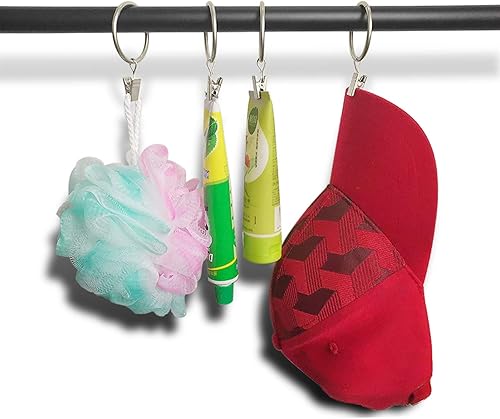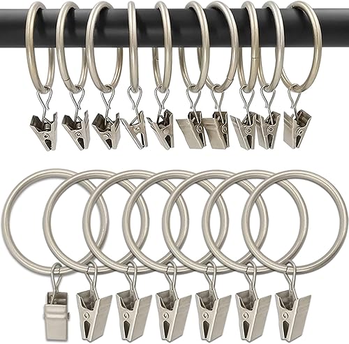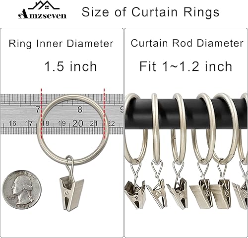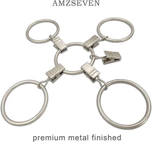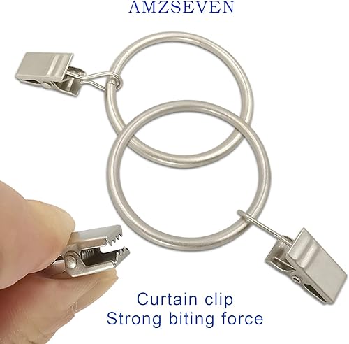 AMZSEVEN Lot de 100 anneaux de rideaux en métal avec des pinces, crochets pour rideaux décoratifs de 3,8 cm de diamètre intérieur, antirouille, argenté mat