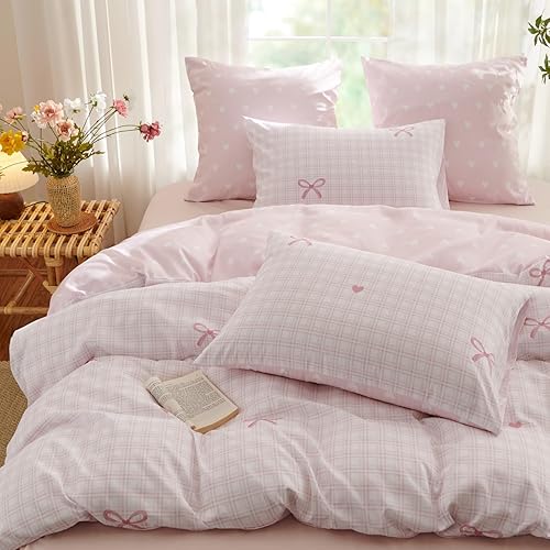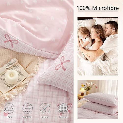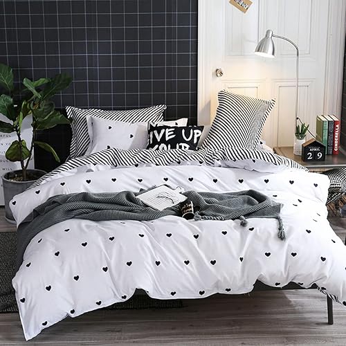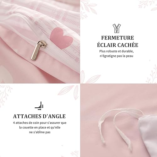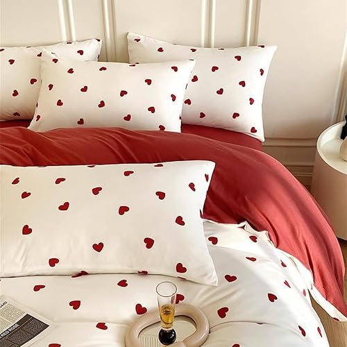 Tospass Housse de Couette Coeur 220x240cm Blanc Rouge Motif du Cœur Parure de Lit 2 Personne Ado Adultes Filles avec Fermeture Éclair Housse Couette en Microfibre avec 2 Taie d'oreiller 65x65cm