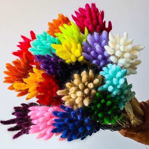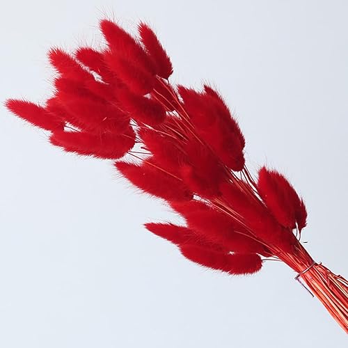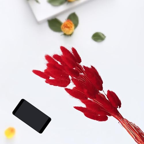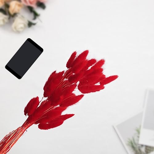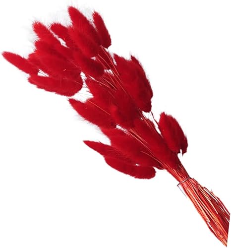 LOVIVER Lot de 60 queues de lapin séchées en fleurs, faciles à utiliser, rustiques, élégantes, décorations florales séchées pour la ferme, les fêtes, le salon, ROUGE