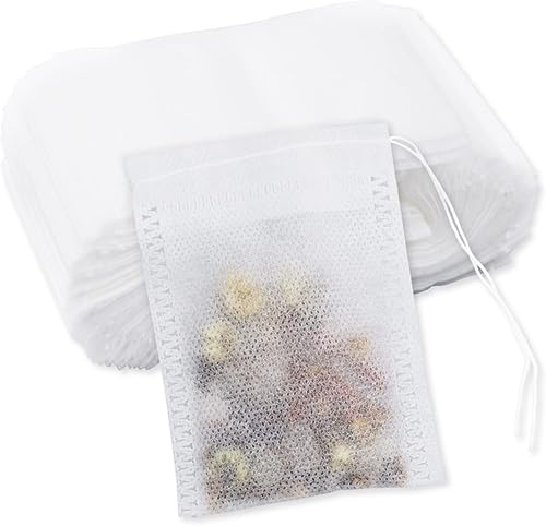 Lot de 100 sachets de thé vides avec cordon de serrage pour thé en vrac café épices 7 x 9 cm (2,75 x 3,54 pouces), cb001, blanc
