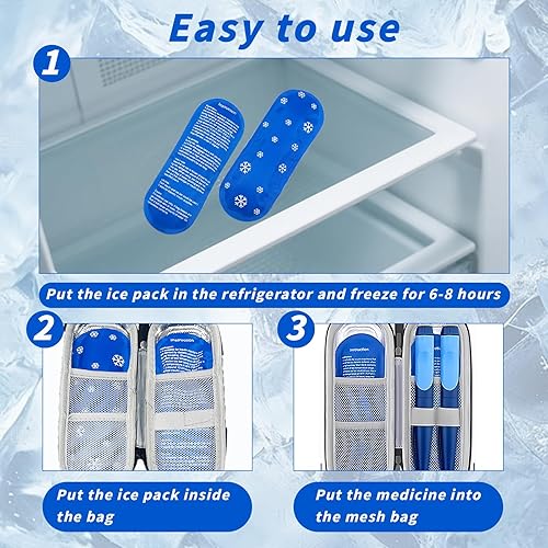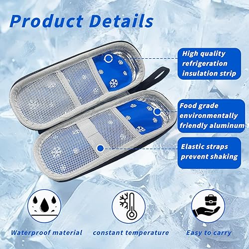 Shyllin Pochette Isotherme Insuline, Trousse Isotherme Insuline Medicament Voyage, Mini Sac Insuline de Voyage avec 2 Packs de Glace, Boîte Isotherme pour Insuline, Sac Isotherme pour Médicaments