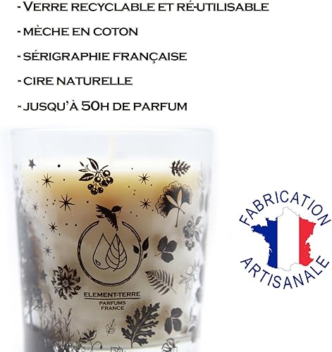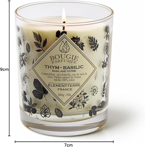 Bougie Parfumée 200 Grammes, 50 Heures Parfum THYM Basilic, Blanc/Crème