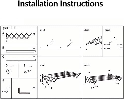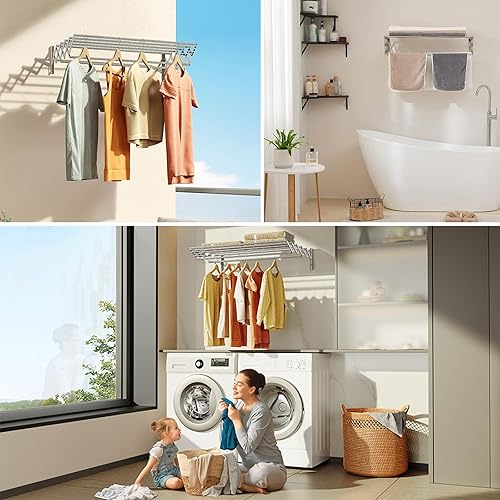 ChaneeHann Étendoir à Linge Mural Pliable,Étendoir Rétractable,Porte - Serviettes en Acier Inoxydable Pliable à 7 Tiges,Séchoir pour Intérieur et Extérieur Économisant de l'espace,60x 52 x 18.5cm