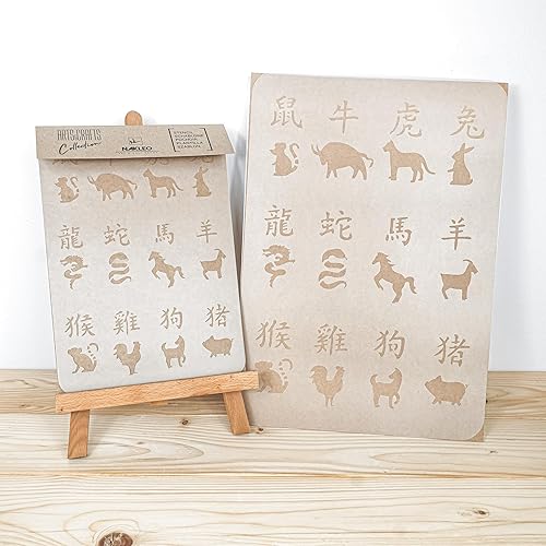 NAKLEO Pochoir pour Peinture Artisanat A4 21x30cm, Modèle en Plastique, Réutilisable, Chinois Zodiaque Signe, DIY Bricolage Scrapbooking Décoration a Peindre, Mur Sol Bois Tissu Meuble