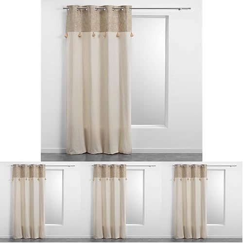 douceur d'intérieur, Rideau à Oeillets (140 x 240 cm) New Sultan Or, Polycoton Finition Top Métallisé et Pompon