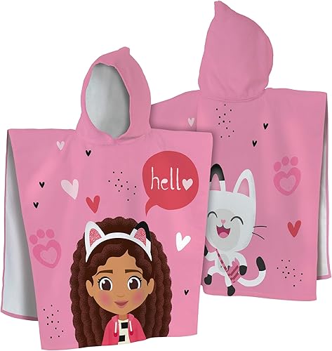 Gabby ET LA Maison Magique Duo Cape de Bain Enfant | 100% Coton | Oeko-TEX | 60x120 cm | Imprimé Fille | Rose