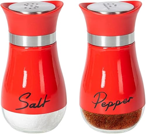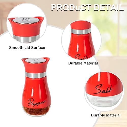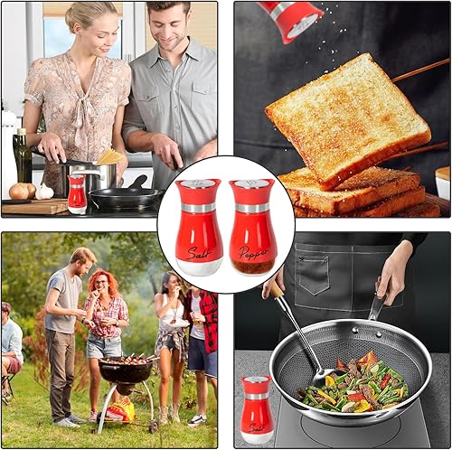 Yuqilin 2 Pièces Salieres et Poivrieres Set, Acier Inoxydable Salières et Poivrières, Saliere en Verre, pour Peut être Utilisé Dans les Maisons, les Cuisines, les Restaurants(Rouge)