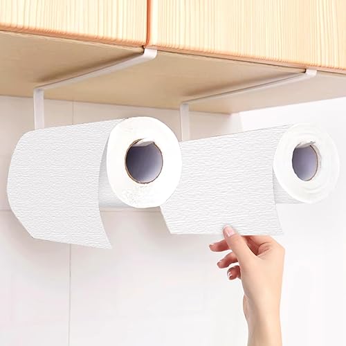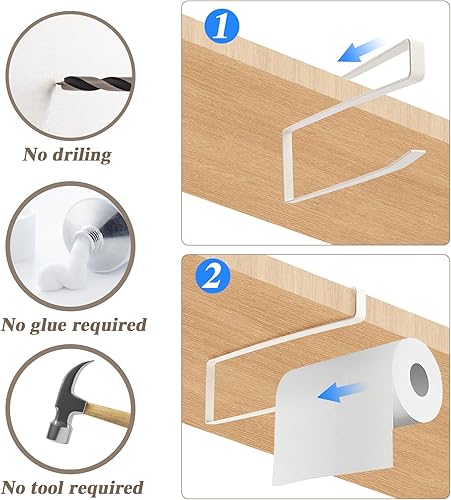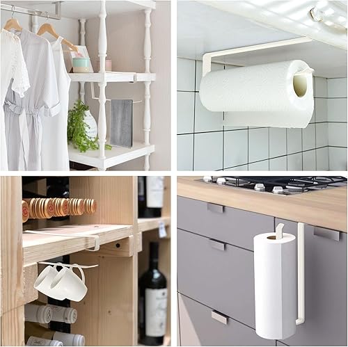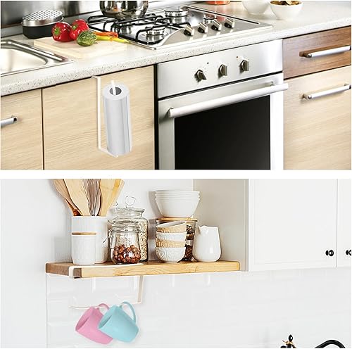 Porte Rouleau Papier Cuisine,2pcs Porte Essuie Tout Cuisine sans Perçage, Supports pour Papier Essuie-Tout, Dérouleur Porte Rouleau de Cuisine Mural pour Cuisine, Salle de Bain, Placards-Blanc