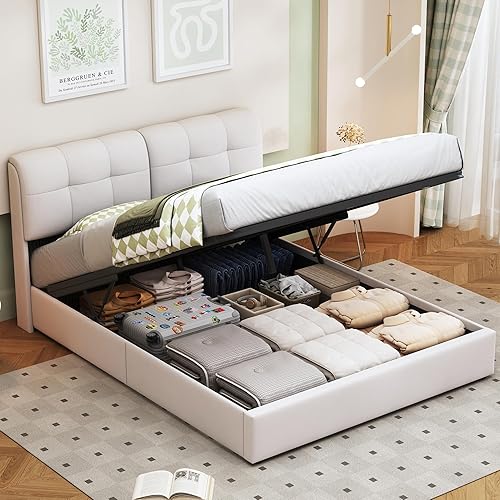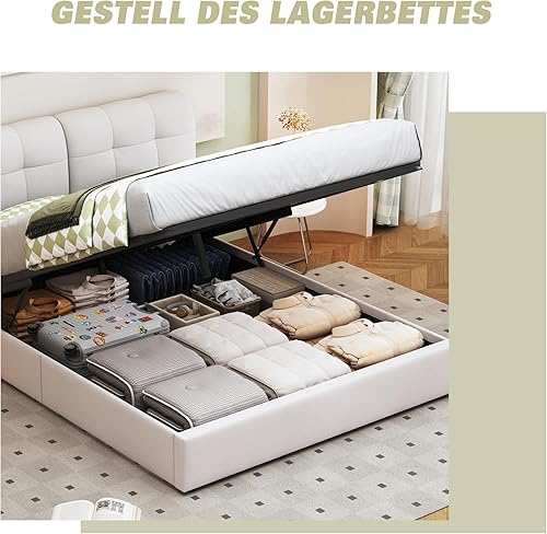 Fofetbfo Lit Coffre 140x200 avec Sommier, lit Double rembourré avec Rangement et éclairage LED tête de lit, LIt 2 Personnes, Lit Hydraulique Cadre de lit, pour Adultes et Adolescents,Velours