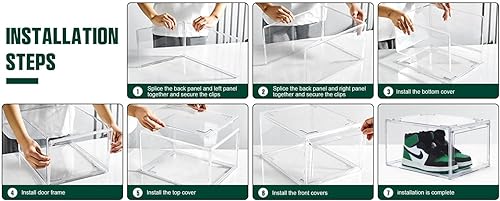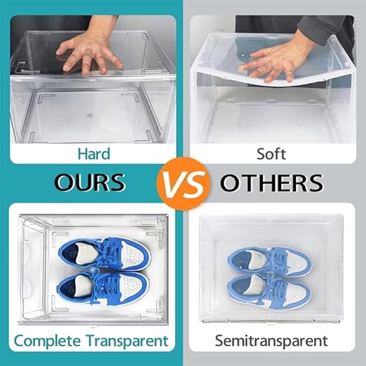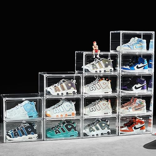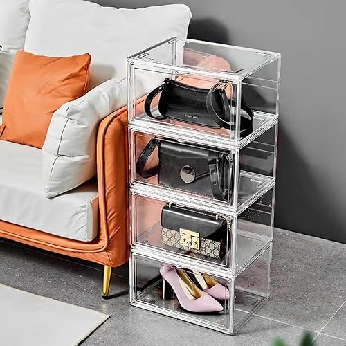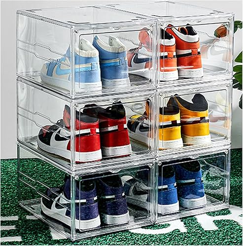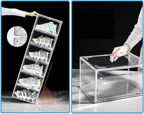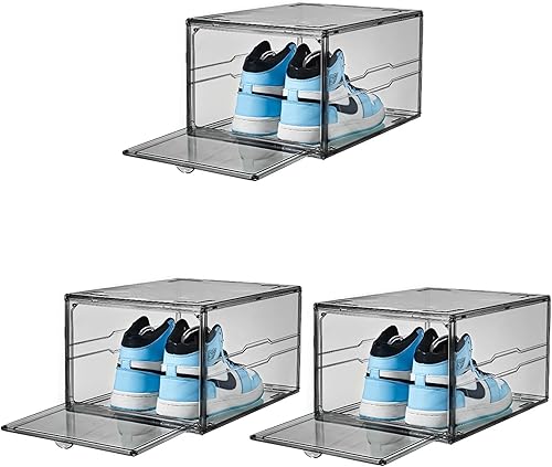 MECC Boîte à Chaussures Transparentes en Plastique Dur,Boîtes de Rangement Empilable avec Couvercle Le Grand 37x27x20cm,Acrylique Conteneurs Organisateur Vitrine D'exposition (Grey/Side open)