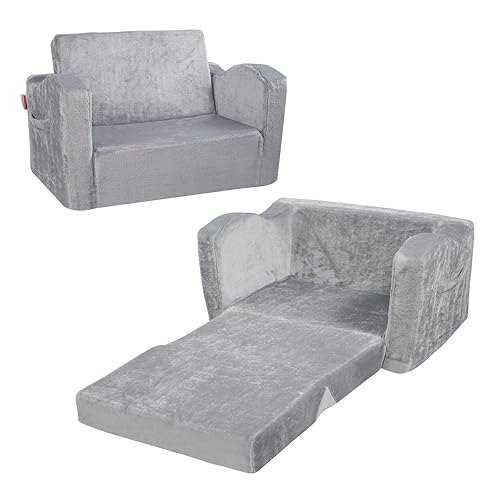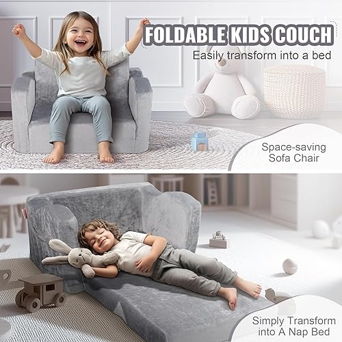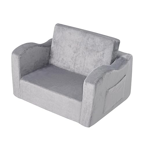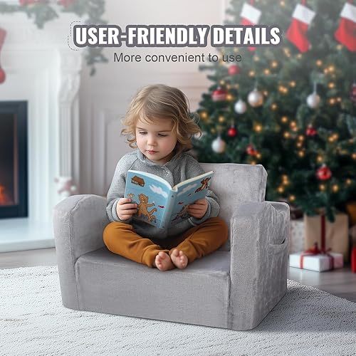 VEVOR Fauteuil pour enfants pliable, canapé pour enfant 2 en 1, en éponge 25D haute densité souple et confortable et housse en tissu de flanelle, meuble de salle de jeux, cadeau pour tout-petits, gris