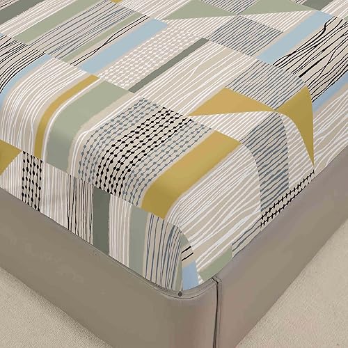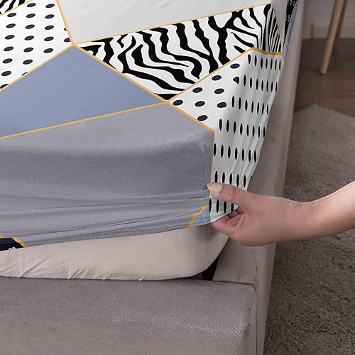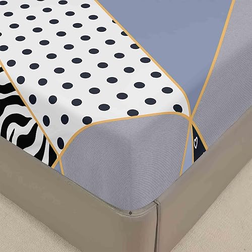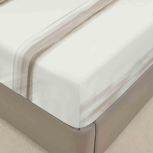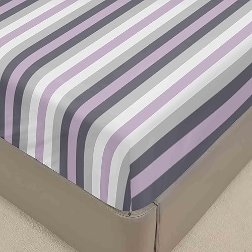 Surwin Drap Housse 160 x 200, Rayure Gris Violet Imprimé Draps Housses en Microfibre, Doux Protege Matelas avec Une Rebord Élastique, Lavable Ajustable Protection Matelas avec Bonnet 30 cm