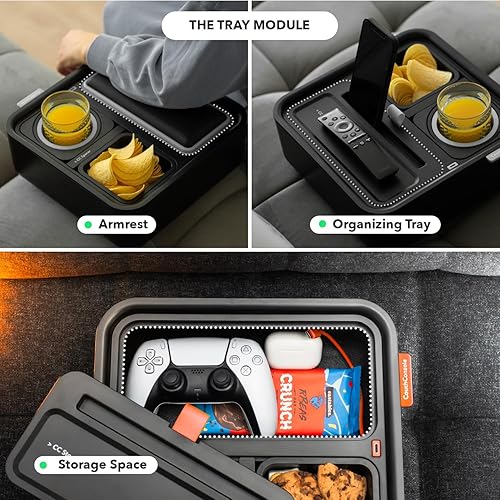 CouchConsole Plateau original – Panier de canapé pour boissons et collations avec accoudoir, table avec support de téléphone – Rangement et organisateur de télécommande TV – Pour salon, camping-car et