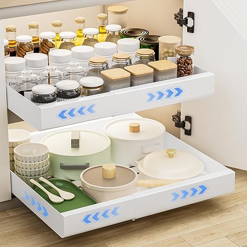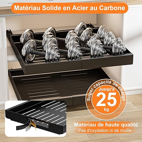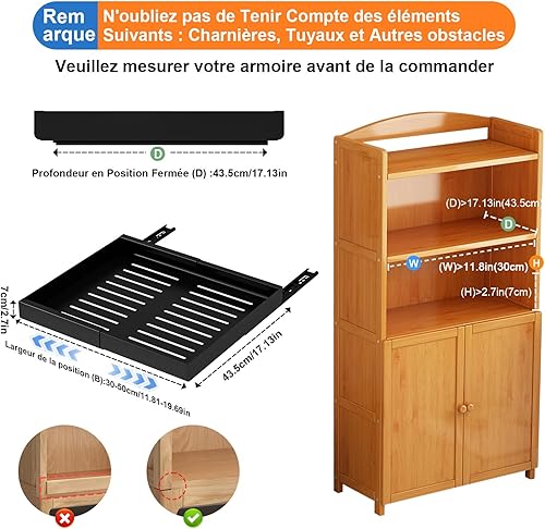 Tiroir Coulissant Cuisine, 2 Pièce Tiroir Télescopique Extensible (30-50cm x 43.5cm x7 cm) Organisateurs D'armoire Coulissants Etagere Rangement Cuisine Telescopique pour Armoires de Cuisine Salon