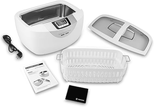 Yokkao Ultrasonic Cleaner Nettoyeur à ultrasons 2,5 L, avec minuteur et fonction chauffage pour la nettoyage de dentiers, bijoux, lunettes, couverts de table, couleur blanc
