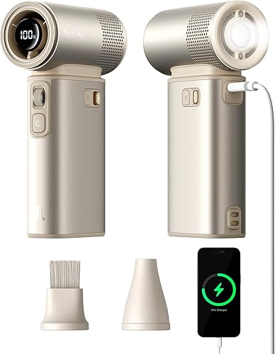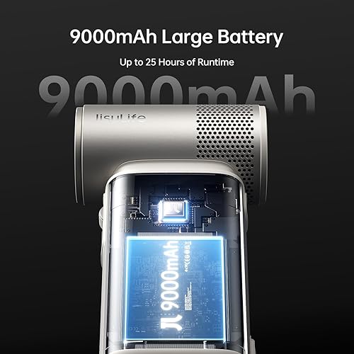 JISULIFE Ventilateur portable 5 en 1, 100 vitesses, 9000 mAh max 25 heures, mini ventilateur rechargeable 18 W avec lampe de poche, ultra moteur, coque en métal, cadeau de voyage multifonction pour