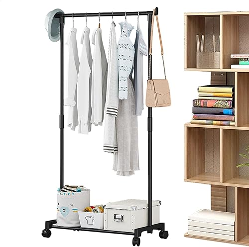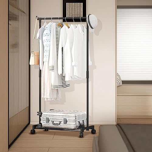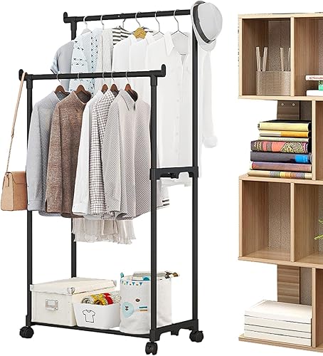 Portant à vêtements double rail robuste avec roulettes, portant à vêtements roulant, cintre à vêtements robuste