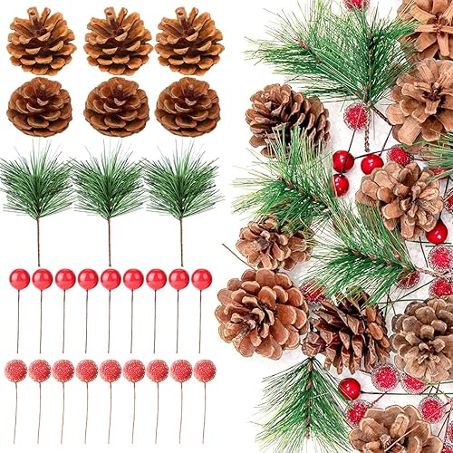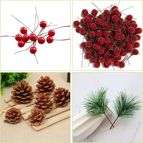 MEIYIFAN 240 Pcs Guirlande De Noël Accessoires,Branches de Pin Artificielles de Noël Aiguilles de Pin,Noël Pommes de Pin, Baies de Houx de noël pour Guirlande De Noël Décorations