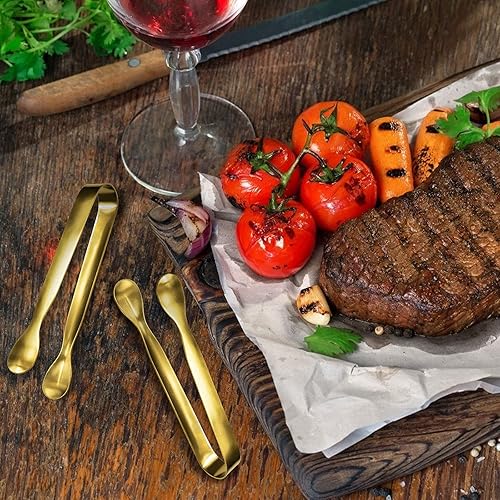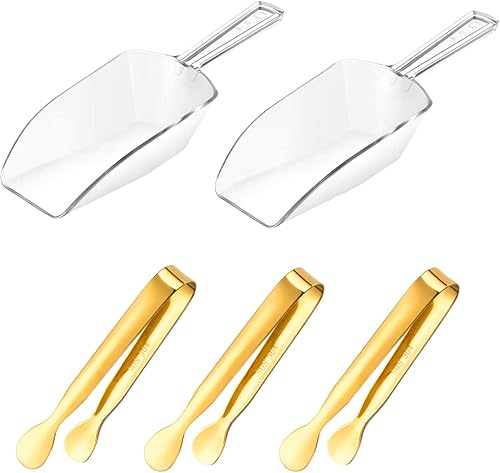 Lot de 3 pinces à glace dorées et 2 cuillères à mesurer en plastique, pinces de service pour aliments pour café, bar, cuisine, mariage, fête d'anniversaire