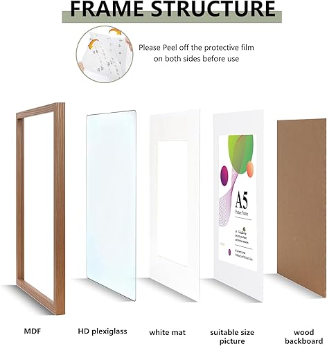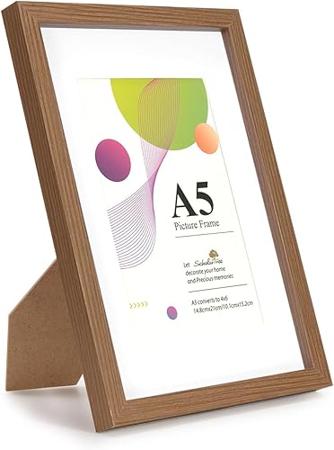 Scholar Tree Cadre photo A5 - 1 paquet de cadre marron A5 - Marron - 21 x 14,8 cm - Cadre en bois avec fixation de 15 x 10 cm - Avec support de comptoir ou pour accrocher au mur