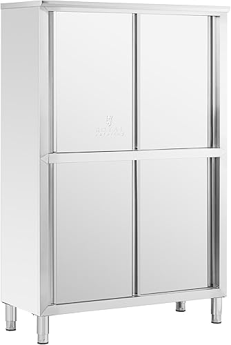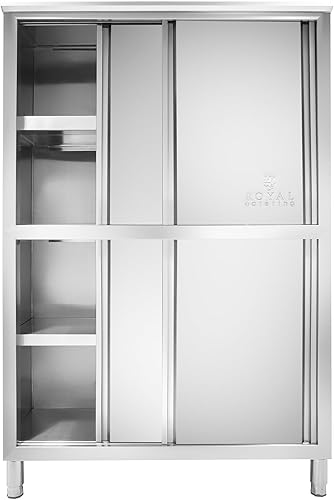 Royal Catering Armoire à Vaisselle INOX - 180 cm de Hauteur - 4 étagères - Pieds réglables