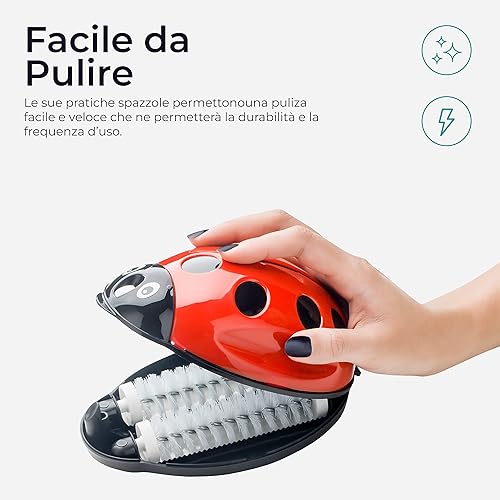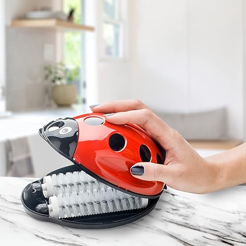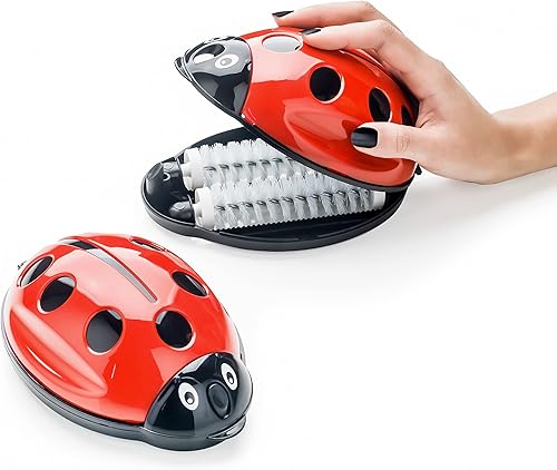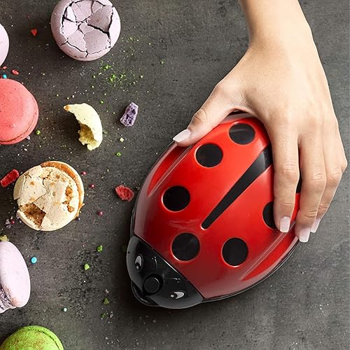 Baroni Home Ramasse Miettes Manuel en Forme de Coccinelle, Aspirateur à Main de Table, Double Brosse pour Nappe, Tapis et Canapé, 17x11x7 cm
