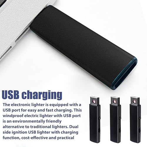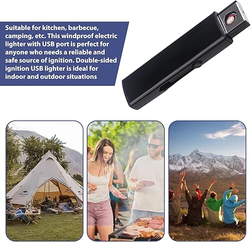 LEKEFETO Lot de 3 briquets tempête électroniques : coupe-vent électrique avec port USB, allumage double face, briquet tempête sans flamme, rechargeable par USB, noir
