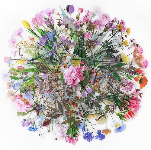 Lot d'autocollants de fleurs, NogaMoga 240PCS Stickers Décoratifs Transparents pour Animaux de Compagnie, 6 Thèmes de la Nature Autocollants de Plantes pour Scrapbooking, Arts, Bullet Journal, Cahier