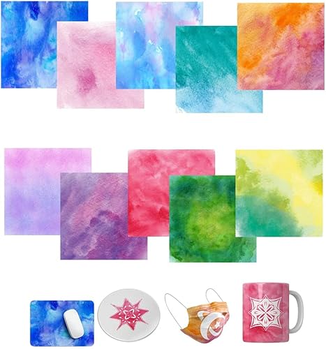 LUCKIGUCK Infusible Transfer Ink Sheets 10 Pièces/ensemble, Heat Press Feuilles D'encre De Papier Transfert, Pre-printed Sublimation Paper for Mug (Aquarelle)