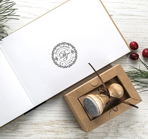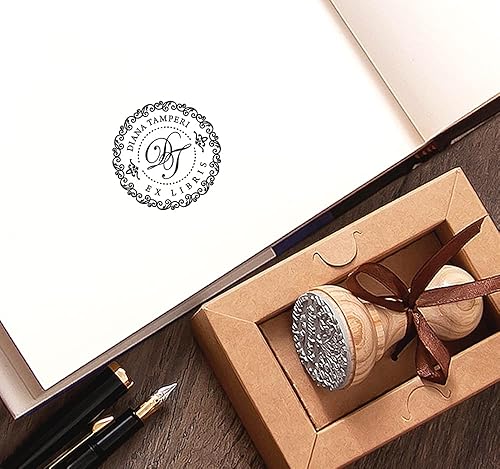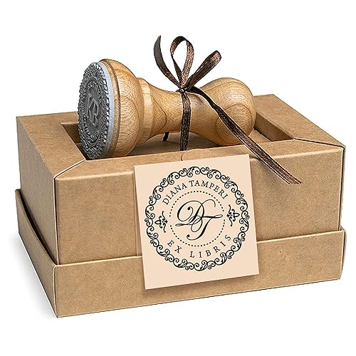 Tampon Initiales Ex libris Personnalisable, 2 Lettres Monogramme Bordure Décorative, Cadeaux Amoureux Livres dans Boite Spéciale