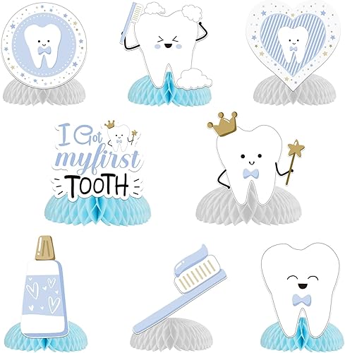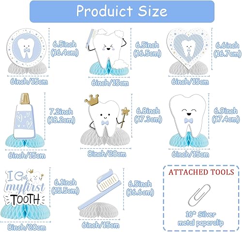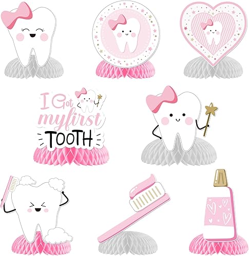 8Pcs Décoration Table Motif Dent, dessus de table en nid d'abeille, décoration de fête de 1ère dent fête prénatale Centre de Table en Nid d’abeille Fête Cadeau Enfant (Rose pour Fille)