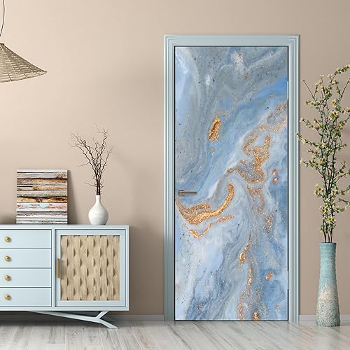 Peinture murale de porte Sticker Motif de marbre Stickers de Porte 3D Effet Décoration Auto Adhésif Amovible Imperméable PVC Autocollants De Porte Muraux L100 x H200cm