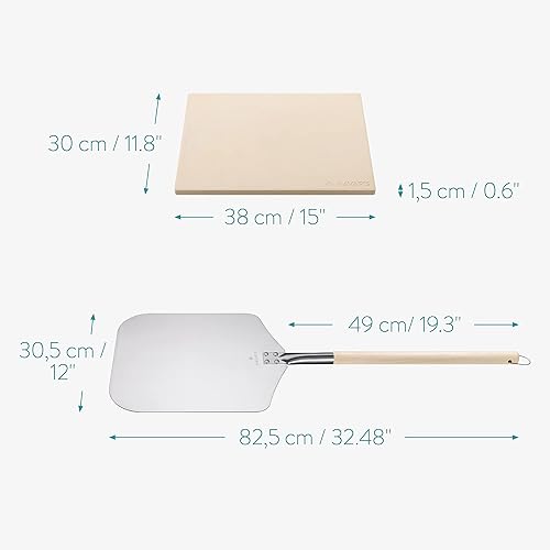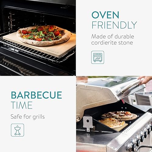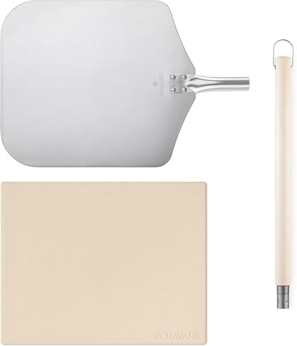 Navaris Pierre à Pizza avec Pelle - Kit Pierre Pizza Rectangulaire XL 38x30cm avec Pelle et Recettes - Four Traditionnel Bois Barbecue Grill Charbon