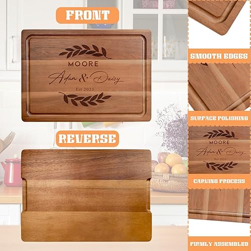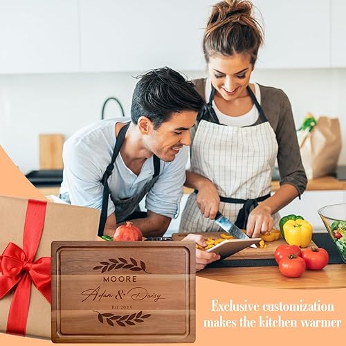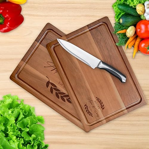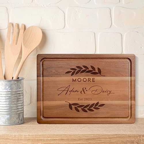 Planche à découper en bois, Planche à Découper Personnalisée - pour viande, jambon, pain, fromage, naturelle, durable. Idée de cadeau pour couples, mariée, parents, famille-28x20 cm, 33x23 cm, 38x26