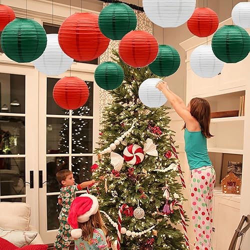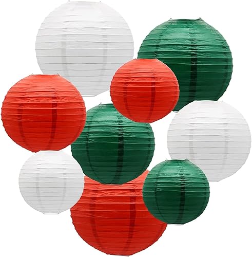 Lot de 9 lanternes en papier de Noël - Décoration de fête - Multi-couleurs - Convient pour Noël, fête de mariage, fête d'anniversaire prénatale, décoration de fête d'anniversaire - Lot de 9 (blanc,