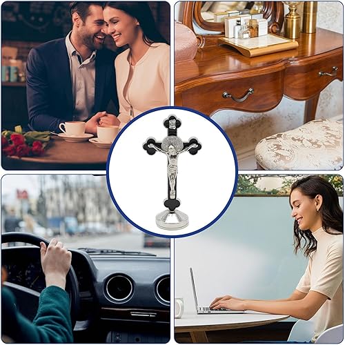 Missmisq Statue De Jésus Christ en Croix, Figurine Jesus on Crosses Religious Ornament, Jésus Christ Croix Statue Figurine Décor pour Voiture Maison, Statues Religieuses De Table en Métal