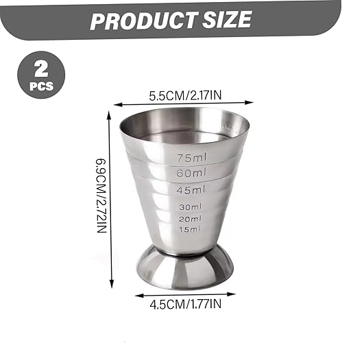 2pcs Jigger pour le barman 75 ml de cocktail en acier inoxydable tasse de mesure avec cocktail professionnel à l'échelle jigger accessoires de barman