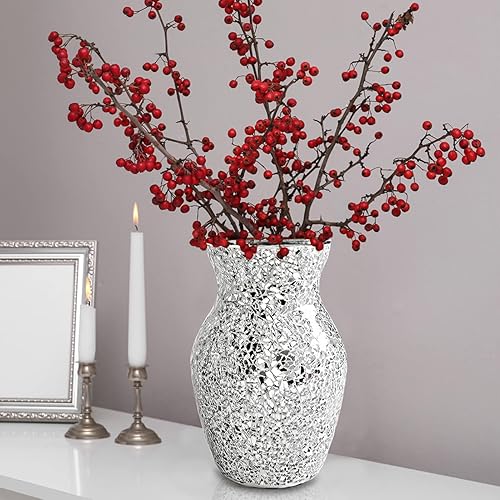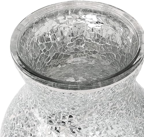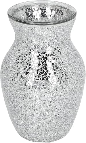 Vases pour Fleurs, 20 * 10cm Vase Argenté en Mosaïque De Cristal, Vase Miroir en Diamant écrasé, Vases en mosaïque en craquelé Motif, pour Décoration De Maison Table à Manger
