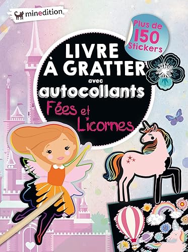 Livre à gratter avec autocollants - Fées & licornes