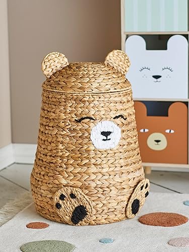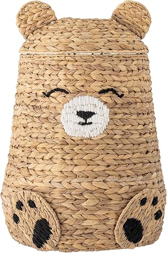 Bloomingville MINI Timone Panier avec couvercle, naturel, jacinthe d'eau, T40 x H57 cm, 280 ml