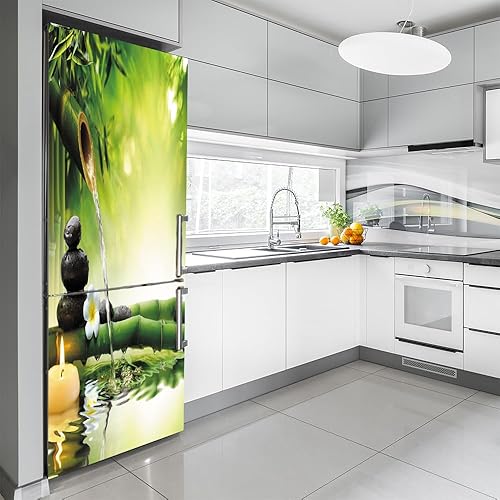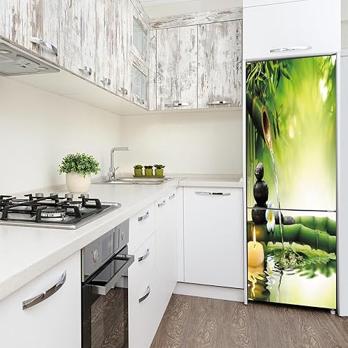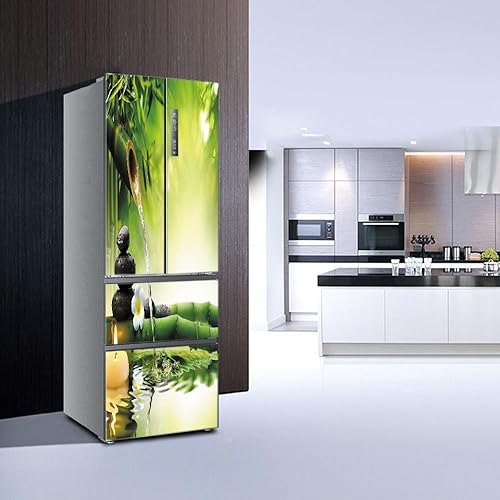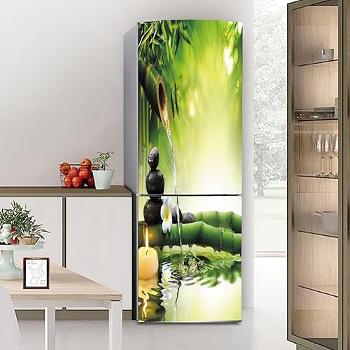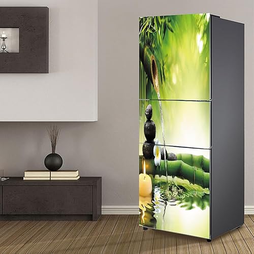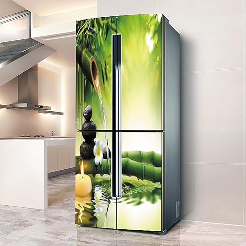 Stickers autocollants pour frigo, autocollant de réfrigérateur couvrant entièrement la porte du réfrigérateur, autocollants muraux pour décalcomanie de cuisine, bambou vert, eau qui coule silencieuse