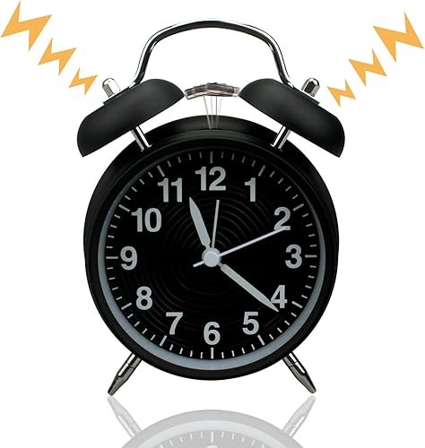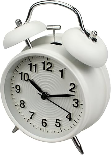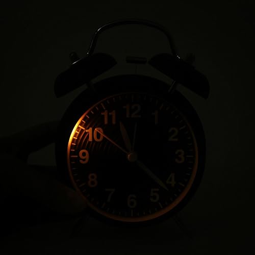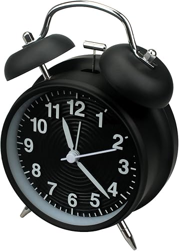 Homchen – Réveil à deux cloches - 10 cm - Sans tic-tac – Fonctionnant avec des piles – Alarme bruyante à l’ancienne – Avec veilleuse pour chambre à coucher