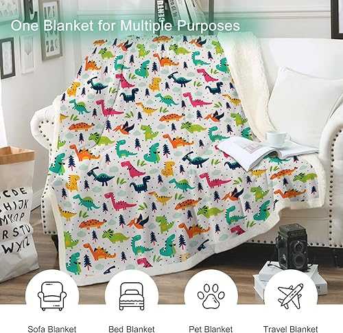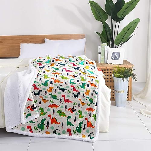 WONGS BEDDING Couverture Enfant 130 X 150 cm, Couverture Dinosaure, Couverture Sherpa Chaude et Confortable en Microfibre