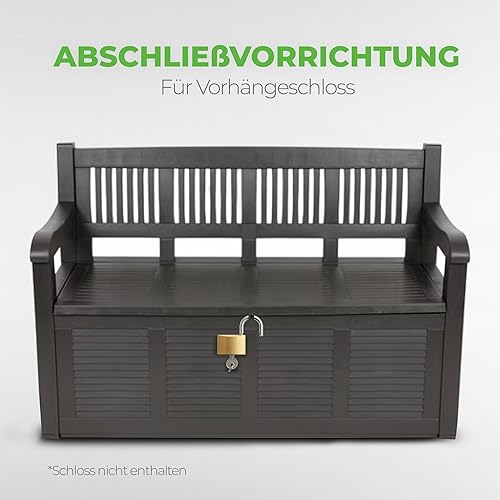 Bestlivings Banc de jardin (L x l x h) 130 x 60 x 85 cm noir avec coffre de rangement intégré résistant aux UV et aux intempéries