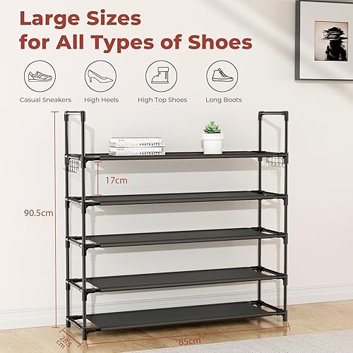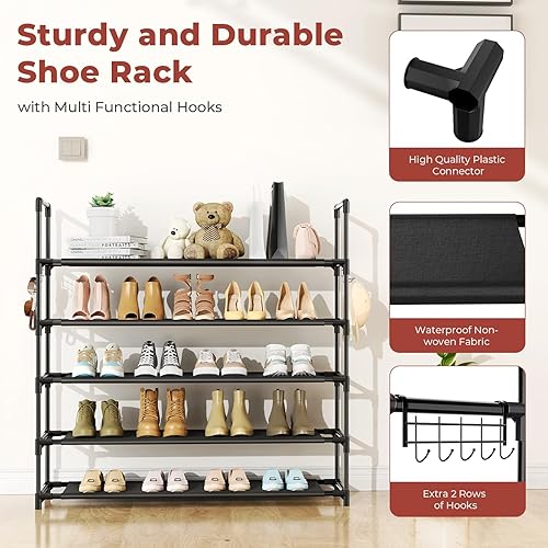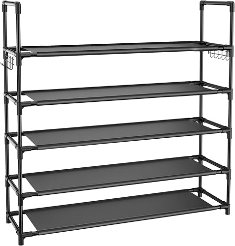 Vicye Étagère à chaussures à 5 niveaux avec crochets, peu encombrante, pouvant contenir 20 à 25 paires de chaussures, idéale pour les placards, les entrées et les espaces restreints.
