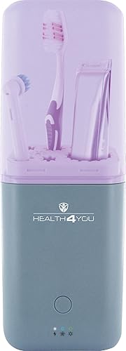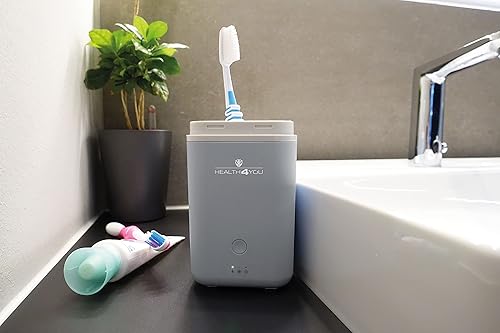 SCHWAIGER 662047 Stérilisateur UV Porte-Brosse à Dents Fonction séchage Étui de Voyage Lumière UVC Récipient de Voyage Séchoir à Brosse à Dents Désinfection Mini Ventilateur Gris/Blanc